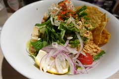 サマソニ、今年も進化しています。今日はナチョスチップがついてます。これを麺と一緒に食べると歯ごたえとか味が微妙に絡んで意外の美味さ!さすがシェフ、すごいですわ。