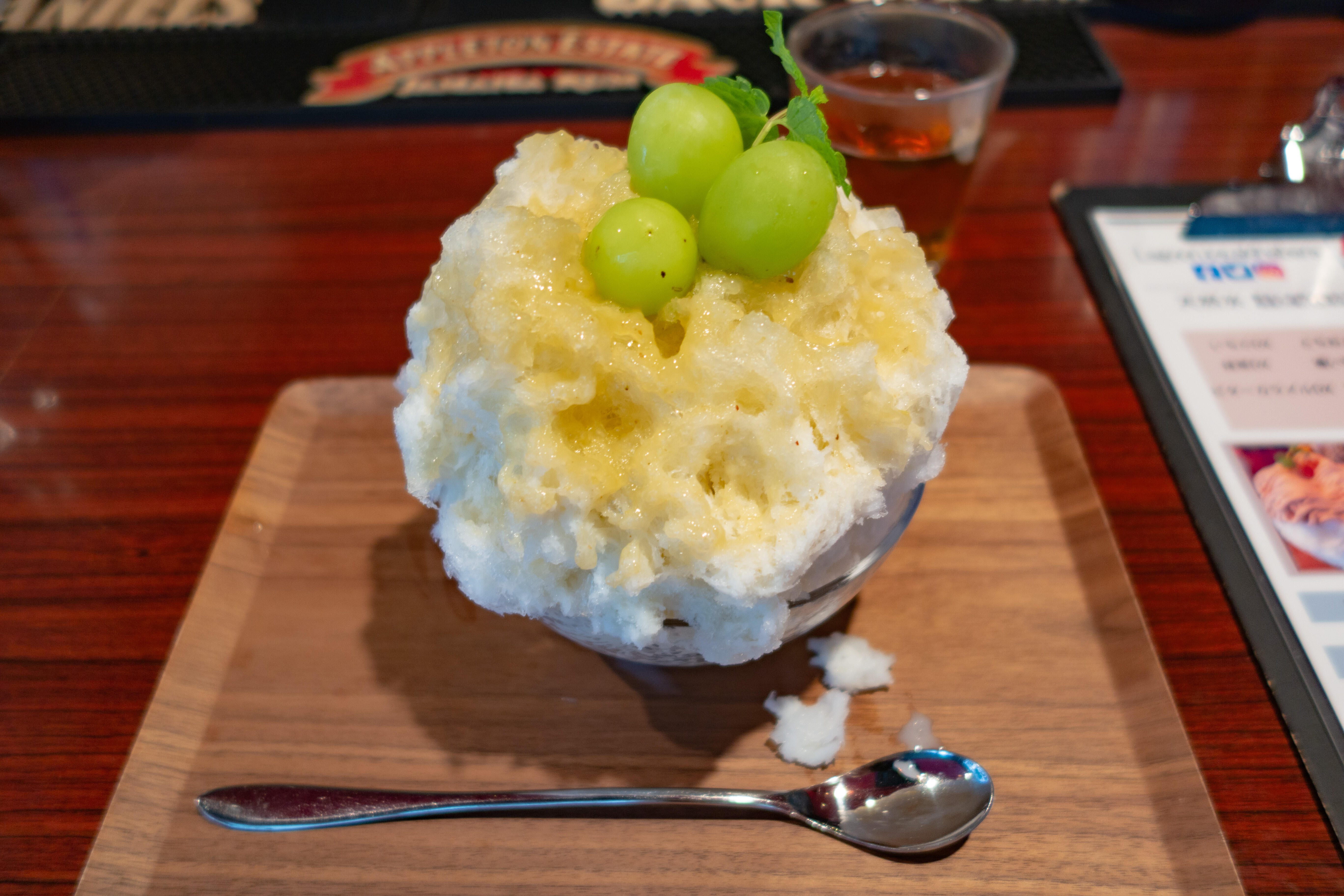 いつものかき氷やさん。今日は巨峰、もうぶどうの季節なんですね...