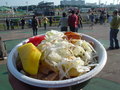 大井の丼といえば 大井では吉野屋の牛丼が有名ですが、隠れた名品がこれ。 もつ煮丼。 朝ご飯+昼ご飯がこれ、どうせG1の日には夕方には食べ物が無くなって、飢餓の人々が行列をなすのが常なので、早めに腹ごしらえをしておくのが大事。 でも、このもつ煮の上を行く焼き肉丼というものがあったんだけど....今はもうないんです。 味噌の汁が染みこんだごはんもなかなか。