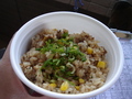 ペッパーランチと言う名のチャーハン 新スタンドでの面白店舗の一つ、ペッパーランチのペッパーランチです。やっぱり鉄板が無いとねぇ?これじゃ単なる胡椒味の強いチャーハン....。うまいことはうまいんですけどね。