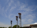 春の空、青みが弱いので、ぽかぽか陽気というかのんびり感というか、ほんわりとしたイメージを与えます。そんな中を競馬場の形にあわせたかのようにパトロールタワーの上にカーブを描いた雲。
