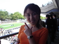パドックアナ第一号! 新スタンドには、新パドックブースがあるんです。前の掘っ立て小屋に比べて、格段の進歩。新潟の次ぎに部屋も大きいそうです。キングサイズのベッドが入るぐらい....って寝るわけじゃないんだから(笑) あ、パドックにギター侍がっ! ネタは「新スタンドは綺麗だって、言うじゃなぁ?い」「でも、あんた達のお金で建てたんですから?残念!」でした。「でも、雨が降れば全く屋根の意味なく全員ズブ濡れになる欠陥設計ですから?残念!」とか言ってくれれば拍手だったのに(笑)