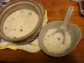 昨日の鍋の豆乳スープの残りがあったので、お粥を作りました。それにフリーズドライの七草を入れて...。