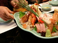 お正月の恒例のこのお店でのお昼。いいサービスといいお味のこのお店。刺身の盛り合わせとカニです。おいしそうでしょ?