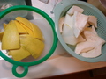 夜なべで晩白柚料理 さて、お土産でもらった晩白柚。年末から自宅にいい香りを広げてくれていましたが、いよいよ食べることにしました。実はこれから数日いただくとして、この白い皮と外の皮、これを料理するのが晩白柚の楽しいところ。ヘタと実の薄皮以外は全部使えます。切っただけでいい香りがキッチンのまわりに漂ってます。 白い皮は砂糖漬けに、外の皮はオレンジピールならぬ晩白柚ピールにでもしてみようかと。できあがりは明日のお楽しみ。