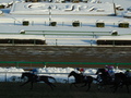 内馬場は雪かきしてないようなので、こんもり雪が積もってます。ダートは田んぼ、芝コースだけはなんとか使えるようになってます、というわけで今日のメインもやっぱり前残り。