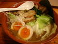 昔の家の近くにある、この地域での自分的には一番店。昔は濃いトンコツ醤油横浜家系発展型のお店だったのですが、最近は魚系もやっているようです。たまにしか来れないので毎回お気に入りのトンコツでしたが、今回は魚系をチョイス。びっくりなのは、これは家系のトンコツの濃さのまんまの魚系。だからキャベツがうまいんですよ。