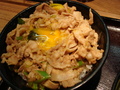 ちょっと醤油の効いたおろしニンニクのようなタレに十分につかった薄切り豚肉をネギとさっと炒めて、生卵と和えながら食べるこのすた丼。地元ではポピュラーな食べ物なんですけど、他では珍しいんですかね?