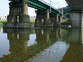 かれこれ20年以上前、ここでよく釣りしてたんですよねぇ。鯉の吸込釣りという釣り方です。4?5mの投げ竿にリールをつけて、仕掛けを川の真ん中の深い所に投げ込みます。仕掛けは、握り拳よりちょっと小さめの団子状の鯉の餌。その中に釣り針をいくつも埋め込んで大きめのおもりを付けて川底に沈めるようにします。鯉は口から餌を吸い込む習性があるので、餌と一緒に針を吸い込んでしまって釣れるというわけです。狙うは50cm以上のサイズの鯉。釣り竿を立てかけて先端に鈴をつけておきます。魚がかかると鈴が鳴るので、すかさずフッキング(合わせる)というわけ。