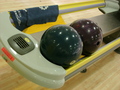 実家に5年近く眠っていた昔のマイボール(紫色の方)を持ってきました。5年ぶりに投げたのに、こっちの方がレーンに合うのかあっさりこのレーンのベストの210が出ちゃいました。青いボールは16ポンドなのに対して、たしか紫は15オンス。最初の1ゲーム目はなんか軽くてインパクトが弱く(=ピンが飛ばず)ダメだったのですが、威力を増すためにスピードを上げると面白いようにポケット(1番ピンと3番ピンの間=ここに当たるとストライクが出やすい)に吸い込まれる。この紫のボールはアローラインという名前で、名前の通りゆるやかにカーブを描くボールなんです。自分としては、ゆるやかに曲がるのではなく最後の最後にグググッ!っと強烈なフックをかけたくて、そのイメージと合わないので今の青いボールに買い換えたんです。でも考えてみればこの紫の方が前もスコア安定してたんですよね....。
