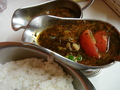もうすぐ最後になる夏かれー。今日はバジルありにしました。野菜を味わいながら飲むスープがうまいんです。