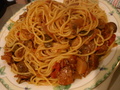 折角スキレットがあるので、スパゲティにしてみました。昨日のラタトゥイユを元にしてちょっと野菜の甘めの強い味になりました。 つけ麺ならば、200gは軽いのにスパゲティの200gって多すぎでした。麺の密度が違うのか?