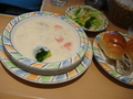 これが2日間限定、師匠も大絶賛(?)のホワイトベジタブルシチュー。野菜が割とゴロゴロ入っていて、美味しいです。サラダのドレッシングも一工夫あって少し甘いのも、オリジナルメニューからなのかな?