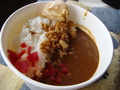 東京競馬場の新しいエリアにある豚屋さんのカレー。にんにくの素揚げがいいですね、これで450円。物価高の競馬場の中ではリーズナブルな一品です。