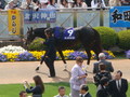 今年もSBからじ 今日の主役はこの馬。グランドジャンプ3連覇のオーストラリアの馬、カラジです。綴りは「KARASI」ね。騎手は「B・スコット」 去年もありました「SB からじ」の横断幕。カラジも「あれ?去年もあったよな、この横断幕」とか思っていたりして。