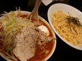 昨日はじわーっと身体の中から辛さを感じるすーぷかれーでしたが、今日はこのお店で辛いつけ麺。これ、単純に辛いんです。表面的に辛いっていうか、スープの味含めて全部辛さで覆い尽くしている感じ。野菜の甘さと麺の味で辛さを薄めながら食べている感覚。いや、別にまずい、って程じゃないんですけど、何食べているのかいまいちわからなくなりそうでした。