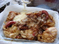 大たこ争い 今日は府中では最大のお祭り「くらやみ祭り」が開催されています。そんなわけでお昼は出店のたこ焼き。一時期モロッコのタコ不足が言われておりタコの入手が大変とか言われていましたが、最近の出店のたこ焼きはタコの大きさを競うのがトレンドのようです。少なくともたこ焼きからたこがはみ出していないとダメのようで、店によってはイイダコ一匹入りみたいなお店もありました。 ここまででかくなってしまうと、たこ焼きを食べるのではなく、たこをしっかり食べている感じです。あ、「たこ焼き」だからいいのか。