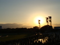 パトロールタワーの夕陽 最終レースが始まる前の一瞬。突然日陰になったような感じになり、横を見てみるとちょうどパトロールタワーに夕陽がかかっていました。毎週だんだん日の沈む位置がずれてきているのがよくわかります。