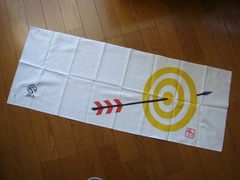 JRAのお年賀。タオル→ハンカチときて、とうとう手ぬぐいになってしまいました。当たり矢のデザインです。シンプルですが変なロゴよりも全然いいかも。