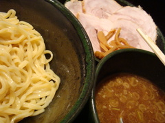 麺と同量 寄席の前に軽く腹に入れておこうと思って寄ったよくくるつけ麺屋。ちょっと奮発してチャーシューつけ麺を頼んでみました。 チャーシュー5枚なのですが、1枚がかなりの大きさ。広げてつけ汁に入れると入りきりません。それが5枚もあると麺とほぼ同量です。つけ麺なのか、つけチャーシューなのかという状態。でも結構これがうまいんです。ただチャーシューが冷たいので、つけ汁の温度をどんどん下げちゃうのがちょっと残念。