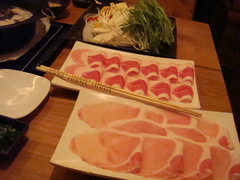 豚しゃぶ 久しぶりのしゃぶしゃぶのお店でお祝い会。ここはなんといっても豚しゃぶ。バラとロースなんですが、値段も安いバラの方が好きなんですよね。ここはポン酢とごまだれなんですが、ちょっとお願いしてオリーブオイル+塩で食べてみました。豚+塩なんて美味しくないわけがない。 豚しゃぶを塩で食べさせるお店があるのも納得です。