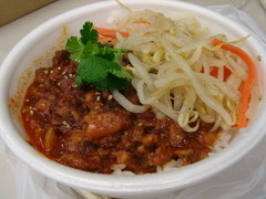 お昼のお弁当屋さんのいつもの麻辣魯肉飯(まーらーるーろーはん)ちょっとリニューアル。まぜて食べるような形になりました。まぜるのは最近の流行なんですかね。