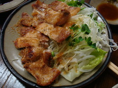 てつじん 2008.4.5 豚のしょうが焼きですよ。 ここのはとんでもなく美味しいんすよね?。 他の店だとメニューにあっても食べるのに 躊躇しちゃいますよ。 どうしても食べたくなるとここの真似して 自作してます(笑) 連れていってもらってるお店なんで なかなか行けないんすよね(^-^;; ではでは。