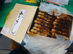 俵型のみたらし 宿泊先の駅の名物。これ好きな人がいるんですよね。まるくなくて、俵型がここのお店の特徴。焼き加減も3段階選べます。これは朝、運動(笑)したメンバーへの差し入れ。糖分で栄養補給してくださいね。