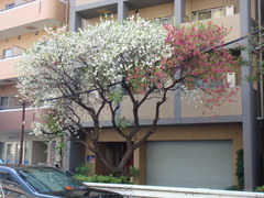 定点観測しているのですが、ほぼ満開です。ここまでくると紅と白がはっきり区別できますね。