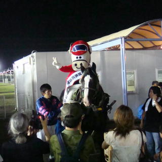 てつじん 2008.8.9 でしょ、シュールだよね?馬に馬が乗る。 ばんえいの馬だからこのぐらいでかくても平気なんだけどね。 結構人気だったので、他にもやらせようかなぁ。 とか川崎競馬場の人が言ってました(笑) ではでは。