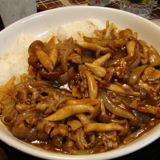 調理時間が短いので結構楽、煮込む時間があんまりないので素材の食感をそのまま味わえるのがいいんですよね。これは豚肉のしょうが炒カレー。コツは、最初に炒める時間の半分ぐらいかけてしょうがの千切りをじっくり弱火の油で揚げるように炒めること。あとは強火にして豚を入れて、火が通ったあたりで玉ねぎとしめじを入れる。玉ねぎがくったりしたあたりで、熱湯で溶いたカレールーを入れて数分煮込めば出来上がり。10分ぐらいでできちゃいます。その上中華鍋一つで出来るので簡単。しょうがが隠し味で利いていて意外とさっぱり系。