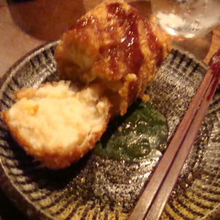 あさりコロッケ 今日は久しぶりのメンバーとのんびり飲みながら気兼ねない話。 お店のオススメ、あさりコロッケです。あわなそうな組み合わせですが、意外と合うんです。クラムチャウダーにあさりが入っているのだから、同じようにクリームコロッケ作ってもおかしくないですものね。