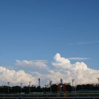 今日は開催初日、都内の地方競馬好きは今日はここで勝負でしょ。高知、帯広も買えるしね。なんとなく夏に戻ったような空と雲ですな。