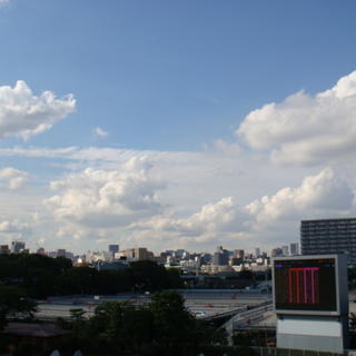 龍の巣 こういう雲を見ると、思い浮かべる光景は2つ。一つは天空の城ラピュタの「龍の巣」と呼ばれる巨大雲に近づいていく前の雲、もう一つはBASTARD!!!の巨大な天使と悪魔が空を覆い尽くす場面。これは大井のパドック側の空です。