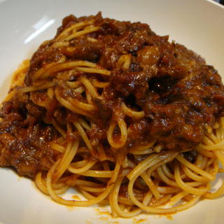 牛すじのトマト煮パスタ スーパーで牛すじが安かったので、トマトと煮てみたのですがこれが大失敗。というのも煮込み過ぎて玉ねぎ、トマト、牛すじ全部とろけちゃいました。シャトルシェフで2時間ぐらいがよかったんですが、そこから寝る前にさらに煮ちゃったのが失敗のもと。朝にはハヤシライス状態....。 味は抜群なので、パスタにしてみました。