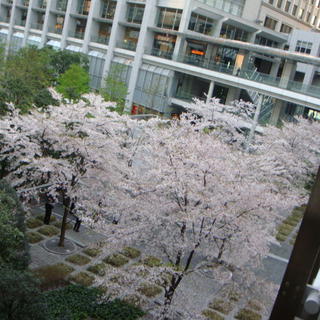 毎年恒例、上から桜の木を見下ろすアングルで。夜桜だともっと雰囲気いいんですけどね。