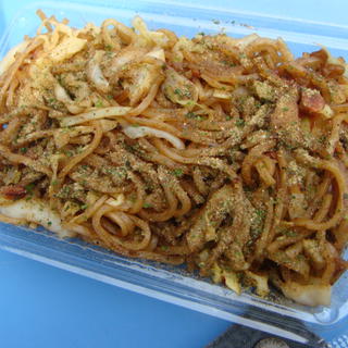 競馬場で売っている富士宮やきそば。いつもは作り置きなのでイマイチなのですが、今日は作り置きが無い。これはチャンスということで焼きたてをいただきました。