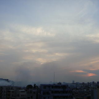 今日は早めに帰って、ちょうどいい夕暮れなので撮影していると....左下に。
