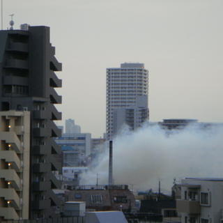 既に鎮火して煙だけのようですが...知人の家の方角だったので、あわてて電話してみたら、向かいの家だったそうです。