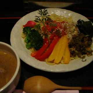 至極全う 自宅近くの飲み屋さんがやっている、昼のランチ。このお店はつけ麺もやっているそうです。気になったので、GWの最終日はここでお昼にしてみました。土、祝日限定の季節の野菜のつけ麺。 牛すじベースの塩味の利いたスープで食べる野菜とつけ麺、片手間で作ったランチとは大違い。ちゃんとしたつけ麺屋さんクラスの至極まっとうなつけ麺です。かなりのうまうまです。 これを食べちゃうと、今度は夜に飲みに来たくなっちゃいますね。