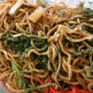 塩やきそば というより、やたら塩辛い焼きそばというのが正解でしょうか。有名な川崎競馬場の焼きそば。これでもかというぐらいに塩胡椒がきいてます。 どーしても飲み物なしには食べられない代物なのですが、癖になるんですよ。