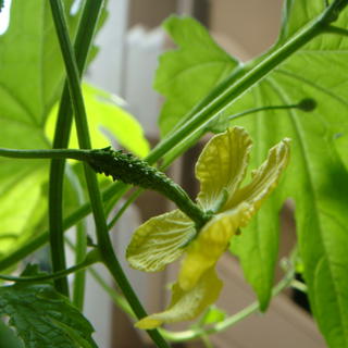 いよいよゴーヤの雌花も咲いてきました。受粉させるために雄花を咲き続けさせないといけないんですよね?さて、これはちゃんと実になるかな。