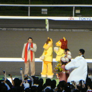 ゴツイフサロー 競馬場でこんな赤いマフラーしているのは、どっかの没落馬主ぐらいかと思っていたのですが、ここにもいました。 注入するしか芸が無いのに、うまたせ君にも優勝ジョッキーにもしないんだから、来た意味ないでしょうが(笑)