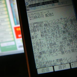 POG馬圧勝! 圧倒的ではないか、我が軍は。 今週の木曜日のフレッシュチャレンジの2レース。3頭出走して2勝&3着。同一レースで1着3着なのでほぼ完勝。これで一気に上位でしょう。5頭指名のうちもう2つ勝ち上がり。 まあ今年はミーハーなものを狙ってますからねぇ。それにしても幸先いいです。 問題は、見に行った日に勝ってくれないとね。