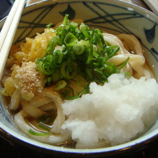 今日のおひるは讃岐うどん。自分でおろした大根おろしを入れて、ネギと天かすとごま。