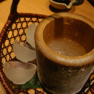 みぞれ酒 ちょっと遠出して、いい感じのお店で。 これはみぞれ酒。氷った日本酒を竹筒に入れて出してくれます。凍った竹筒が保温能力が高いのか結構みぞれ状態を保ったまま飲めます。シャリシャリして飲む日本酒はこの時期本当にいいですね。