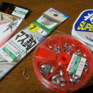 釣りの準備中。こうやって仕掛けを作るのも面倒くさそうで、意外と楽しいもんです。