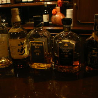 お酒の勉強 馴染みのお店でウィスキーのお勉強におつきあい。世界5大ウィスキーの試飲です。代表的な銘柄を並べてもらいました。飲み比べれば、違いがよくわかるもんですからね。 ここのお店はこういう大人の遊びをさせてくれるのがいいですよね。 自分が好きなのは、一番奥のやつです。一番手前も捨てがたいんですけどね。
