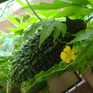 実りの違い 自宅のグリーンカーテン、ニガウリです。これは今日収穫予定のもの。 3本の苗のうち、2本はホームセンターで買ってきて、もう1本は農家の方がやっている出店で買ってきたものです。これはその農家の方のもの。全然実の大きさやツヤが違います。やっぱり農家の方のは違うんですよね。 来年は農家の方だけにしようっと。