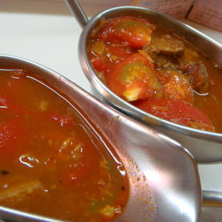 別の夏かれー 夏の夜かれーは結構長期間。今日は別のものにしようとお店に行ってみると、ちょうどいいタイミングでマスターのおすすめ。ポークにトマトのトッピング。 シンプルなポークのスープに、夏ならではのプチトマトじゃない普通のトマトがたっぷり。スープを徹底的に味わえる、とってもホットだけどとってもさっぱりとした夏のためのかれーですね。いつもの倍以上の発汗しちゃいますが、その分食後の後のさわやかさも倍増。